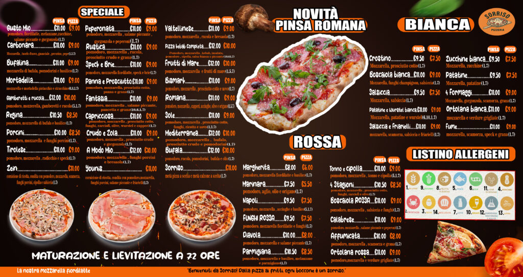 La Pizzeria Sorriso informa che è possibile effettuare gli ordini anche dal mattino, il più presto possibile, tutti i giorni della settimana.